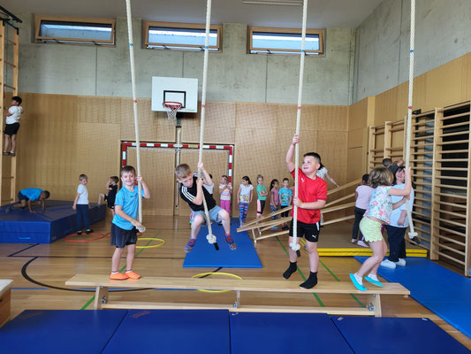 Am 2.Mai verwandelte sich unsere Volksschule in eine große Bewegungslandschaft: Es war Tag des Schulsports! Unter dem Motto „Rutschen, Rollen, Gleiten“ durften alle Kinder der Schule einen ganzen Vormittag lang ausprobieren, wie viel Spaß Bewegung macht.